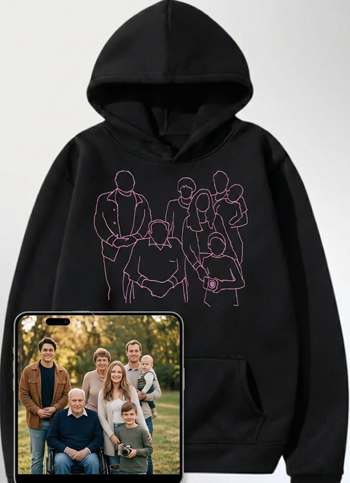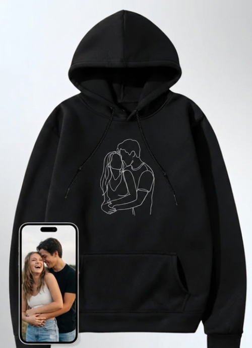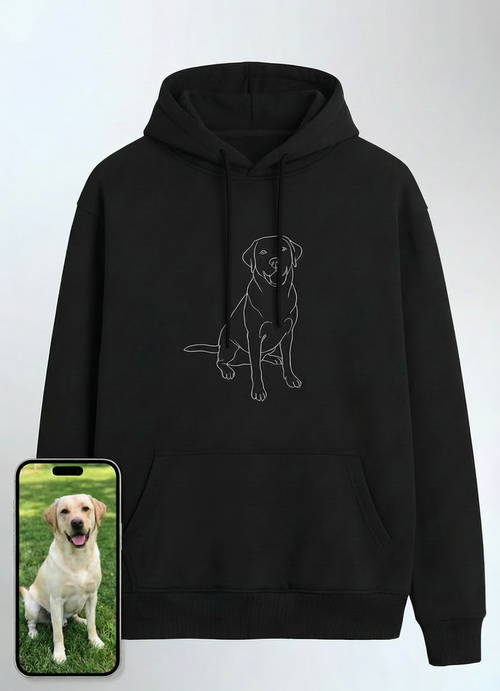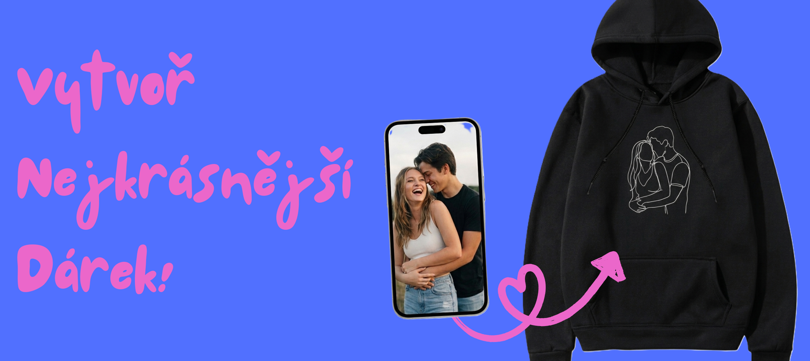 Motiv precizně vyšijeme na mikinu a pečlivě zabalíme — připravený rovnou k darování.